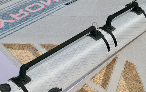 The forces occurring in the strut are enormous. On one hand the wind force pulls the wing away from the rider and on the other hand the rider counteracts this with his physical strength. Even if the air pressure in the strut is high it will always bend slightly and thus influence the profile in the wing. The result is usually poorer handling and less power. To prevent this I have added an additional tension band to the underside of the strut also made from the high-strength UPE material. This design detail prevents this stretching and bending very effectively.